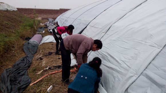 10月18日早晨八点半,秋意微凉,农学院田园使者王佩队来到振辉合作社对大棚香菇的生长状况进行调研。近日,天气大幅度降温,大棚也要换上冬日的新衣。