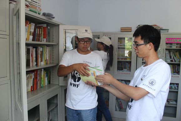 绿色书架是秦岭青年使者的特色活动。观音山保护区的绿色书架设在东河村社区村委会。下午,队员们带着通过募捐和购买获得的书籍,在村长的带领下,来到了村委会。村长告诉我们,每天都会有很多村民来到村委会借书,这是一个造福村民的好活动。随后,队员们将带来的书籍按照类别分别放到了相应的书架内,同时对错放乱放的书籍进行统一的整理。