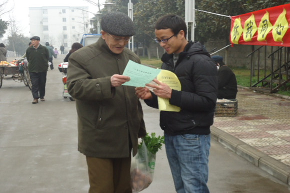 虽然天气有些寒冷,但同学们仍然抱着极大的热情,认真地向居民们介绍这次活动的内容。同学们们不厌其烦地为居民们答疑解惑,并认真地记下他们对此次活动的种种看法与建议。对于那些对这次活动十分感兴趣的居民,同学们还请他们留下他们的联系方式以及对参加帮扶活动志愿者的要求与建议。活动中同学们的热情赢得了小区居民的赞许:“或许我们并不精通琴棋书画,但我们有一颗让人快乐的心;或许我们并不那么圆滑懂事,但我们有一颗辛勤服务的心!”