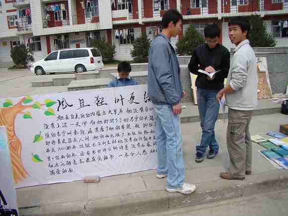 为此3月31日农学院实践部组织开展义务卖书活动。尽一点他们的微薄之力。在北校区东、西两区设点专卖。希望大家可以伸出援助之手,献出自己的一片爱心。在风中流情托起风中绿叶。