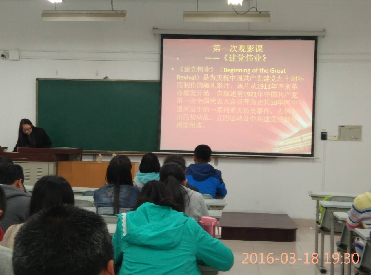 3月18日晚,农学院团工委组织部在N8112教室组织开展了农学院团分校第一次观影课。2015级本科生所有班委共同观看了影片《建党伟业》。