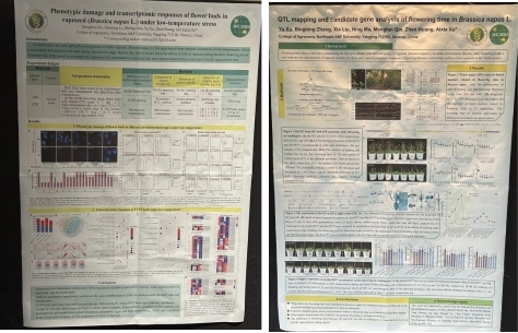 会上,油菜种质创新及遗传育种团队李可琪博士作了题为“BnaA07.BBX22 enhances the salt tolerance of rapeseed by regulating ROS homeostasis”的学术报告,介绍了团队在油菜耐盐方面的研究。该团队还通过海报的形式展示了在油菜耐寒和开花方面的研究进展。