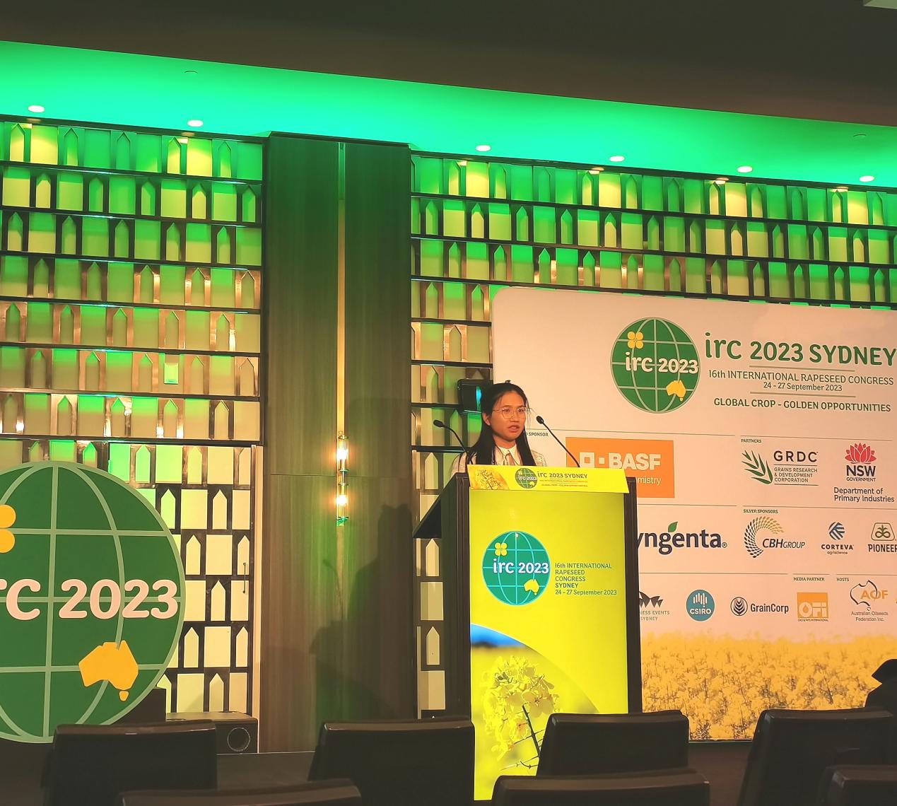 2023年9月22-27日,由国际油菜咨询委员会(GCIRC)主办的第16届国际油菜大会在澳大利亚举行,我院油菜种质创新及遗传育种团队徐爱遐研究员、李可琪博士和博士研究生徐宇参加会议并作学术报告。