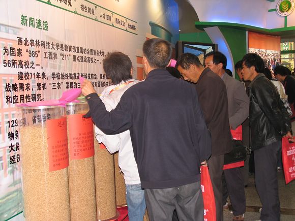 2006年11月5日,第十三届中国杨凌农业高新科技成果博览会正式开幕。在高新技术成果展馆(A馆)我校的展台前,有一道亮丽的风景尤其引人注目—那就是我院展出了几种主要的农作物:小麦、玉米、棉花、小杂粮、甘薯等优良品种和循环农业的最新研究成果,吸引了来自全国各地客人的咨询、参观。展台前前来咨询的朋友络绎不绝,纷纷了解品种的栽培技术细节和循环农业的具体使用情况。