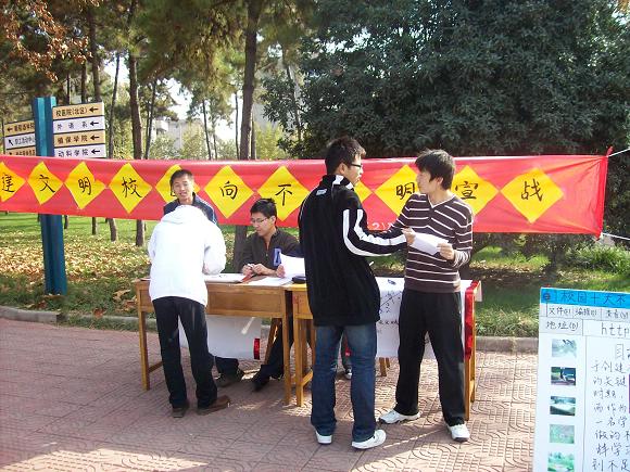 2006年6月11日下午2:30,我院学生在北校区门口举行了以“让文明之花在校园绽放”为主题的大型宣传活动,旨在营造一个文明、和谐、健康向上的校园文化氛围,为我校创建省级文明校园作出自己的努力。