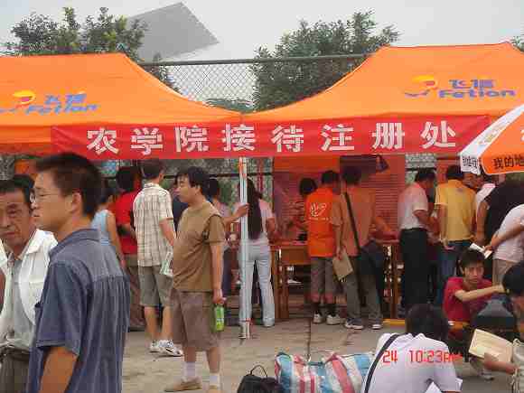 新生正式报道时间为8月24至26日,迎新工作人员在23日早上就开始了工作。事前,学生会协调安排了工作计划,为迎新工作的开展做了充分准备。从接站到注册,再到安排住宿,都设有服务人员进行接待,坚持达到所有07级新生的满意。