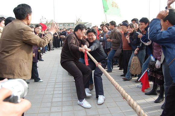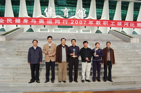4月5日下午,我校全民健身与奥运同行2007年教职工拔河比赛落下帷幕。在院部门工会的积极组织下,在参赛队员的团结合作、努力拼搏下,在学院广大师生的加油助威下,经过两天四场的艰苦比赛,我院代表队终于拔得头筹、卫冕冠军!