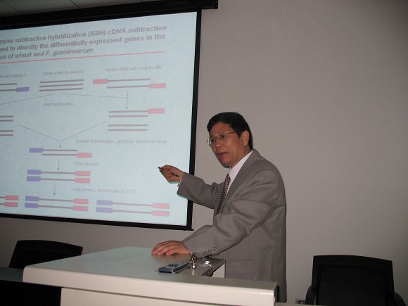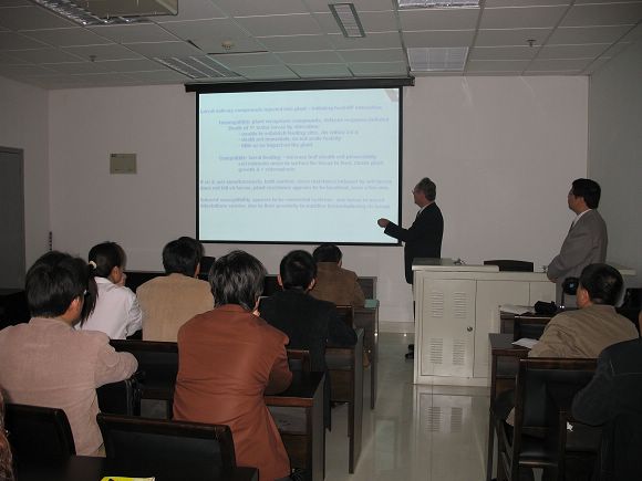 访问期间,欧姆教授参观了我院生物技术中心科研平台及国家小麦改良中心杨凌分中心的相关实验室,并给我院作物遗传育种专业、种子专业的博硕士研究生及科研人员作了“小麦抗小麦瘿蚊(hessian fly )及抗大麦黄矮病(BYDV)的分子育种”和“小麦抗赤霉病的分子育种及功能基因组学”的学术报告,随后与相关人员就进一步合作研究事宜进行了详细讨论。