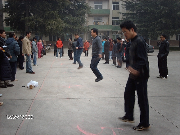 12月29日下午,在学院办公楼前举办了趣味运动会,有跳绳、50米持球跑、原地跳远、团体接力等项目。尽管天气寒冷,但大家的热情很高,比赛在一片欢声笑语中结束。
