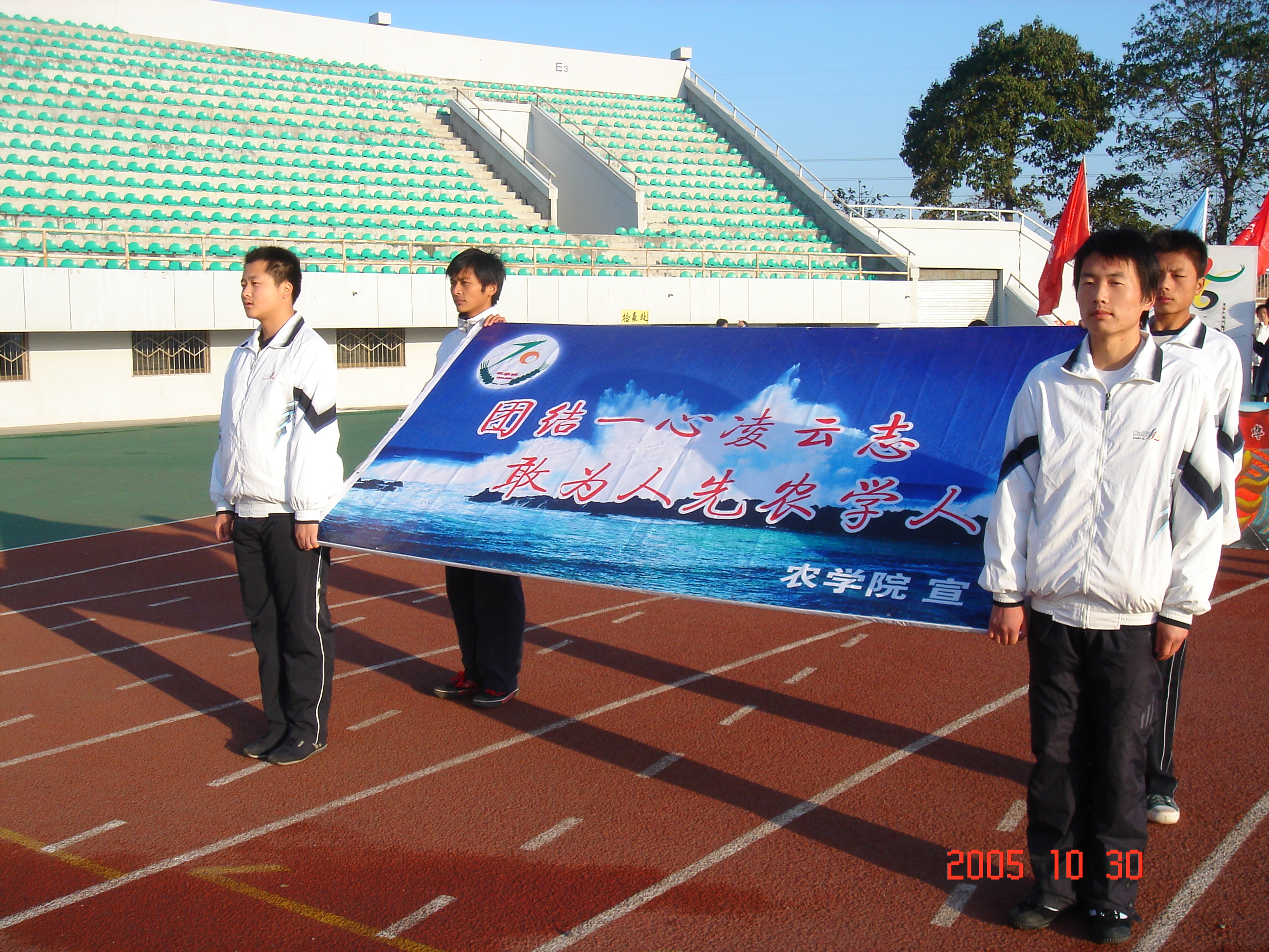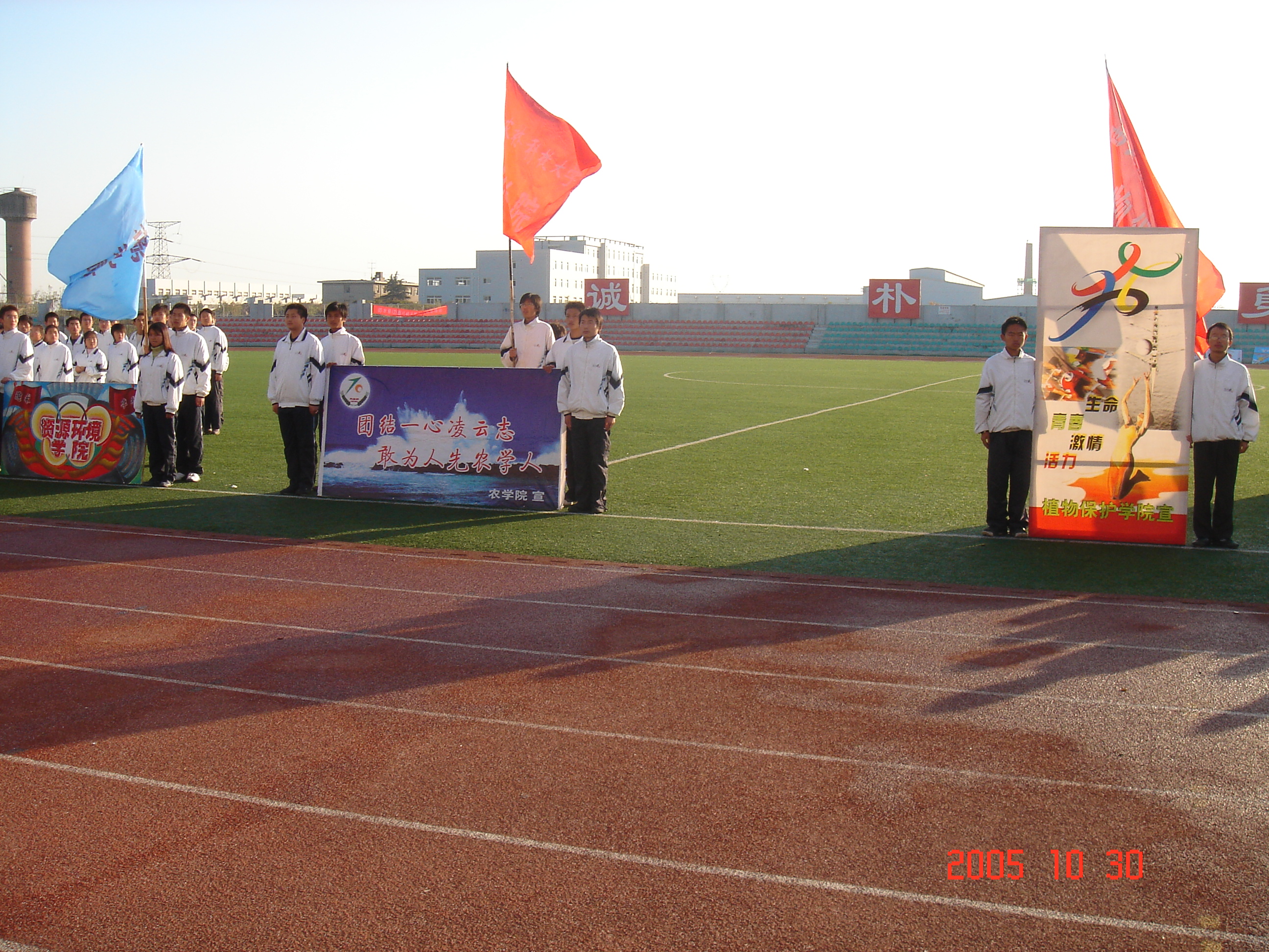 10月30日,西北农林科技大学农学、资环、植保学院2005年新生秋季田径运动会在北校区塑胶体育场举行,开幕式由资环学院党委副书记刘新胜主持,我院党委书记薛吉全致开幕词。此次运动会共有300百余名运动员参加了30个项目的角逐。运动员奋力拼搏,公平竞争,他们精彩的比赛搏得了看台同学们的阵阵喝彩。这次运动会检阅了我院体育运动的水平和成绩,同时也展示了我院全体师生积极进取的精神风貌。