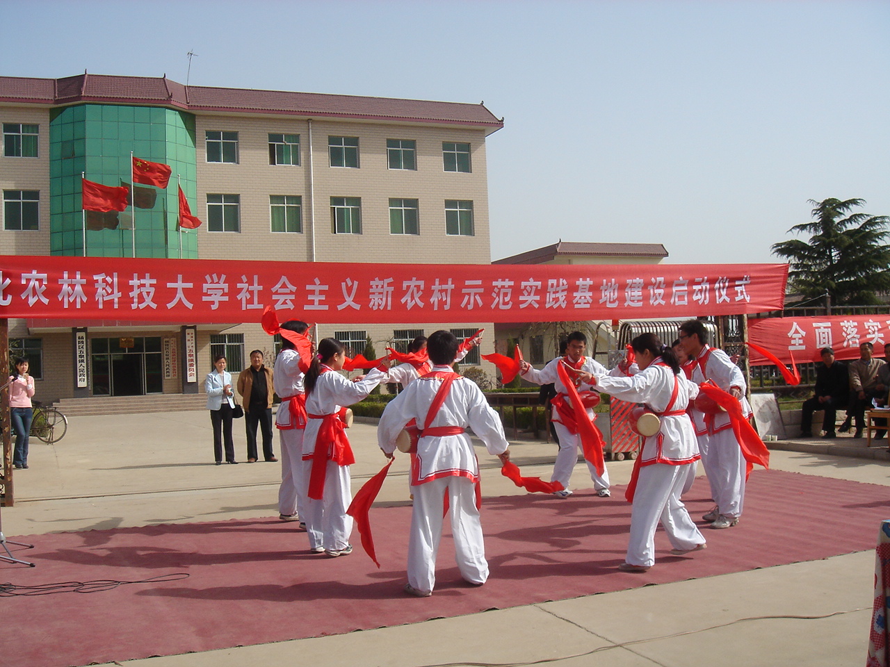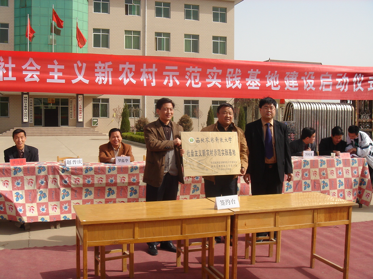 为了响应党中央、国务院一号文件精神,推进社会主义新农村的建设战略部署,积极推进杨陵区社会主义新农村建设,加快五泉镇农村经济文化和社会的全面发展,服务构建社会主义和谐社会的总体规划,西北农林科技大学团委、农学院、杨陵区五泉镇于4月1日在杨陵区五泉镇举行共建大学生社会主义新农村示范实践基地地协议签约及授牌仪式。协议三方在平等自愿的基础上协商决定: 在杨陵区五泉镇共同建立满足三方需要、相对稳定地新农村示范实践基地,在为五泉镇提供农业科技、文化教育服务的同时,锻炼大学综合素质,提高学校育人质量。农学院党委副书记惠安堂同志、校团委副书记刘瑞明同志,五泉镇党委书记罗蕴华同志相继致词。随后学生志愿者代表发言,表示要在课余时间尽最大努力多为农村服务,为新农村建设奉献农业大学生应尽的义务和职责。最后,出席启动仪式的各位领导观看了精彩的文艺演出,启动仪式圆满结束。