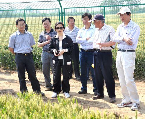 在小麦原种圃、小麦新品系鉴定试验田,孙其信向我校有关专家了解了小麦品种在耐旱、抗冻、抗病、抗倒伏、早熟性、千粒重、成穗率、产量等方面的表现情况。孙其信希望专家们通过考察、观摩,取长补短,潜心攻关,选育出优良的小麦品种,为推进农民增收、农业科技创新和粮食安全作出贡献。