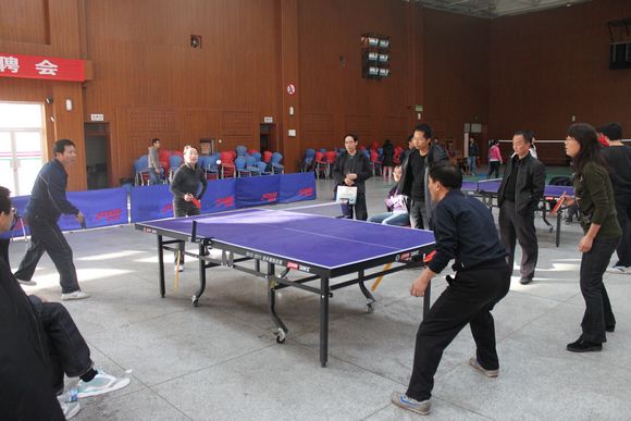 乒乓球作为中国的国球,普及率极高,虽然大家平时没有经过专门的训练,但比赛时都表现出了良好的竞技水平,所以比赛也异常激烈精彩。直拍、横拍、削球、扣球、旋转球、弧圈球等都得到了一一体现,比赛中不时传出热烈的喝彩声,兴奋的“好球”声不断。运动员们在比赛过程中,积极拼搏,不到最后一刻决不放弃的精神深深地打动了在场的每一个人。此次比赛不仅为教职工们提供了一个相互交流、切磋球技的机会,还提供了一个展示自己,不断提高的机会。比赛在一片和谐欢笑中圆满结束,比赛结束后,双方还就乒乓球的打法、技巧、策略进行了切磋。