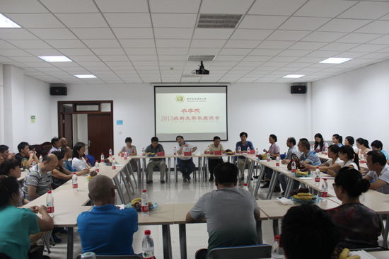 为了帮助新生更快的适应大学环境,帮助新生家长答疑解惑,增进学院同学生家庭之间的了解,8月24日晚,农学院于北校绣山活动中心二楼会议室举行新生家长座谈会,院长廖允成、学院党委书记惠安堂等学院领导,与校心理咨询中心主任金花、系主任、2013级新生班主任、辅导员、家长代表受邀参加了此次座谈会,座谈会由副院长奚亚军主持。
