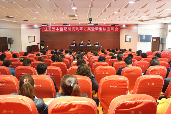 毕业后想创业该怎样成立公司?消费时与商家产生纠纷应如何维权?为了有助于同学们进一步了解创业法律政策,增强同学们在消费过程中维护自身合法权益的意识,3月12日下午,农学院与杨凌示范区工商局联合举办注册资本登记制度改革暨新消法宣讲会。杨凌示范区工商局、杨陵区工商分局及农学院相关领导出席会议,杨凌示范区工商局副局长王宏致辞,杨陵区工商分局副局长张彦斌主讲,百余名学生聆听了宣讲会。