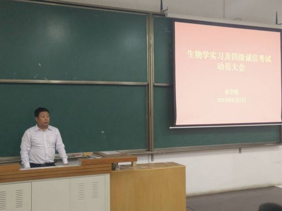 为保证生物学实习及四级考试顺利开展, 6月2日晚,农学院在北校8T03召开“生物学实习及四级诚信考试动员大会”。 农学院党委副书记马志宏,教学副院长海江波,学工办、教学办、带队老师及2014级全体学生参会。会议将实习、考试安排及注意事项给新生进行详细介绍,使其可提前做好相关准备。