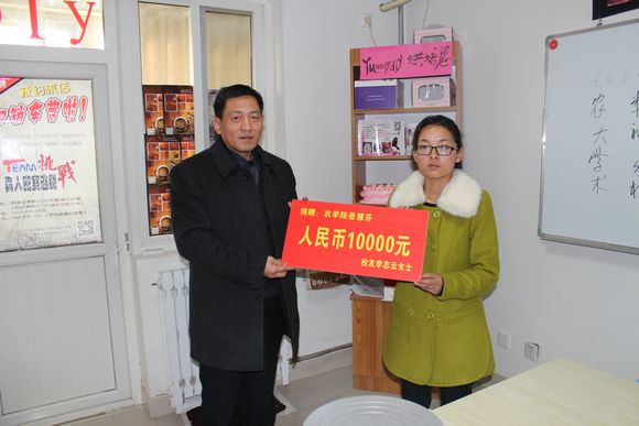 李志云为我校校友,院庆期间,李女士专设创业基金,用以支持我院学子创业。今年9月份,农学院学生岳慧芬通过申请创业项目,从全校100多个创业项目中脱颖而出,获得认可并成功入驻右任咖啡屋。其项目“Yummy DIY烘培屋”与一般糕点店不同的是,它本着“绿色、健康、美味”的理念,制作销售无食品添加剂的生日蛋糕和饼干等食品,并且可以让消费者自己动手,制作出符合个人口味、创意十足的糕点。李女士从学院老师处获悉岳慧芬创业期间遇到经济上的困难后,提议将创业基金捐赠给她。