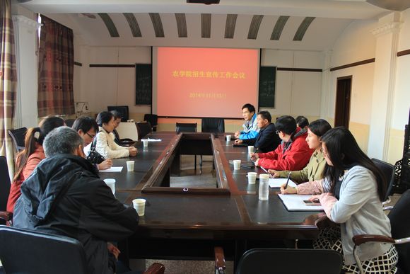为了研究部署2014-2015年招生宣传工作,进一步提升招生宣传效果,11月13日,我院在二楼会议室召开招生宣传工作会议,学院党委书记惠安堂,招生宣传宣讲团专家代表及工作人员参加了会议。党委副书记马志宏主持会议。