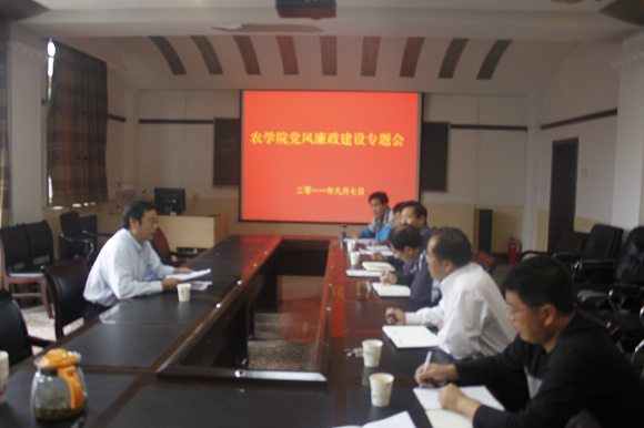 9月7日上午,农学院领导班子成员在学院二楼会议室召开党风廉政建设专题会议,校党委副书记马建华出席会议并讲话。