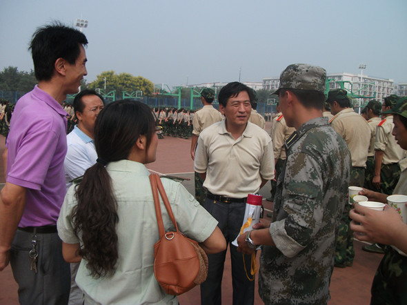 9月1日上午,我院党委书记惠安堂,副院长杜世平,党委副书记马志宏一行三人冒着酷暑来到军训训练场,看望了正在参加军训的我院2011级学生。