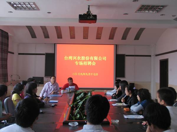 9月17日下午,我院2010届本科毕业生首场招聘会在院办会议室举行,前来招聘的用人单位是台湾兴农股份有限公司,30余名学生参加了招聘会。