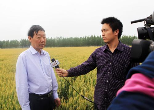 5月13日,孙武学校长、王辉教授在河南省驻马店市检查观摩小麦新品种示范园建设情况期间,接受了中央电视台记者的采访。