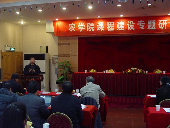 随后,海江波副院长汇报了农学院课程建设的总体方案,他分析了学院课程建设背景,提出了学院课程建设的指导思想以及课程建设目标和建设保障措施,并希望通过大家的共同努力,最终实现各个课程组都拥有一流的教师队伍,采用一流的教材,具有一流的教学内容,应用一流的教学方法,实现一流的教学管理。在3-5年内,重点建设5个课程群,确保学院有1-2门国家精品课程,4-5门省级精品课程,6-8门校级精品课程,8-10门院级精品课程,最终建成由38门课程构成的不同层次的精品课程体系,从而带动学院教学质量的普遍提升。