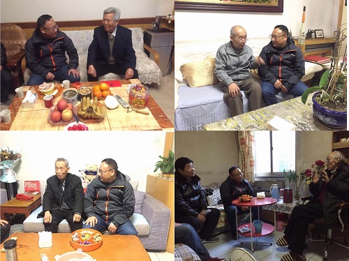18日,从海南刚返回学校,张海成、胡宝仓等学院领导又马不停蹄地前去看望慰问75周岁以上部分离退休教师代表,向老师们拜年,在送去新年慰问品同时与老教师们亲切交谈,详细询问他们的身体状况和生活情况,一一向老教师们汇报了学院2019年的工作、所取得成绩和2020年的工作思路,并向他们征求对学院未来发展的意见和建议。张海成代表全院教职工感谢他们一直以来对学院发展所付出的心血和做出的贡献,祝老师们新春快乐,健康长寿,阖家幸福,希望他们继续为学院的发展献计献策,多提宝贵意见,多关注学校学院发展。