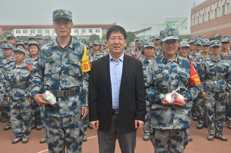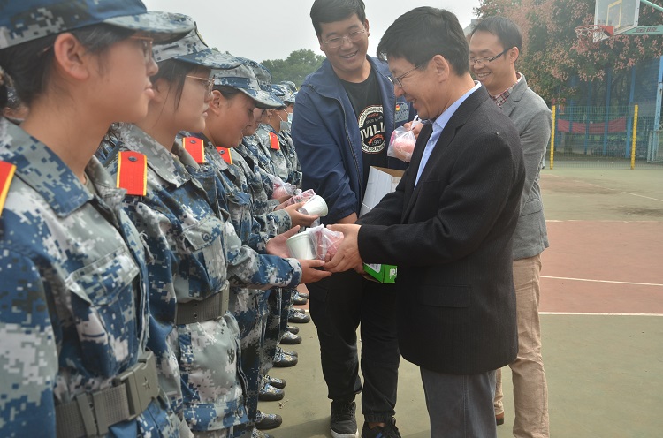 院长单卫星教授代表学院对全体参训新生表示真切的慰问,他表示,自军训以来一直持续从学校和学院的多种媒体渠道密切关注新生的训练情况,对学院新生军训工作组全体成员的辛苦付出表示感谢,对同学们的艰苦训练和不怕苦不怕累的精神面貌予以了充分肯定,希望同学们上好大学第一课,在军训中提升自己的意志品质。