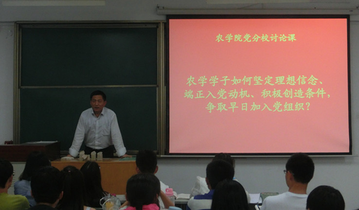 5月4日晚,农学院党分校入党积极分子培训班在北校区8308教室开展了关于“农学学子如何坚定理想信念、端正入党动机、积极创造条件,争取早日加入党组织的”主题讨论。学院党委书记惠安堂为本次党课进行了精彩的讲授。