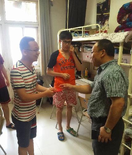通知发出后,全院学生开始宿舍卫生大扫除,柜子上常年积下的灰尘、床底下被遗忘的垃圾,都被彻底清扫干净。随后,农学院党委副书记张海成以及各年级辅导员来到学生宿舍查看大家打扫情况,对卫生优秀的宿舍提出了表扬,并将准备好的“空调小红包”递到同学们手上。当走进毕业生宿舍时,他叮嘱毕业生:“今年的毕业季比较炎热,大家在使用空调时要保持室内卫生,避免滋生病菌而导致身体生病,希望大家健健康康毕业,平平安安离校。”