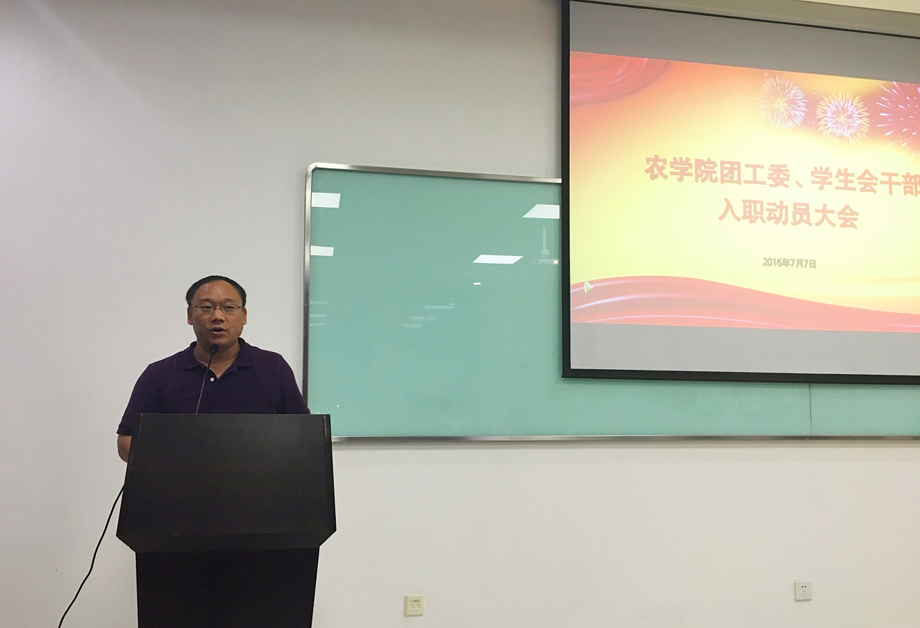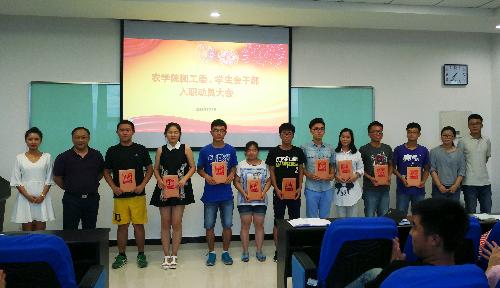 2016年7月7日晚7点30,农学院团工委、学生会干部入职动员大会在学院442会议室召开。党委副书记、副院长张海成、各年级辅导员、2015-2016年度和2016-2017年度所有团学干部参加,大会由学院团工委书记杨华主持。