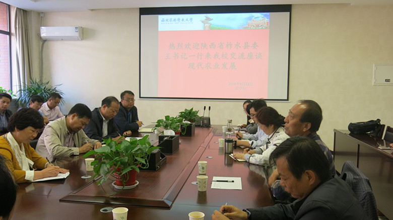9月22日上午,陕西省柞水县委副书记王超锋,副县长谢俊峰、县人大副主席张芳忠、县政协主席吴芳雯,以及下梁镇党委书记、县委办副主任一行十余人来我院座谈交流。农学院张蓉副院长、董振生教授、胡胜武教授、刘绚霞研究员、肖恩时副教授、园艺学院陈红武教授、胡晓辉教授、杨凌金诺种业有限公司经理张斌以及相关人等参加了交流座谈。双方在农科楼203会议室举行了现代农业发展座谈交流。会议由张蓉副院长主持。