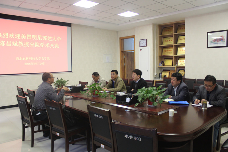 10月20日上午,应农学院邀请,美国明尼苏达大学陈昌斌博士来我校开展学术交流。农学院院长单卫星等学院领导会见了陈昌斌。双方就人才培养、科研教学等方面的合作进行深入探讨,初步达成农作物研发、教师和学生互访,学生联合培养等合作意向。
