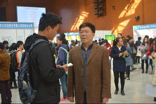 本次招聘会共有来自广东、山东、北京、上海、陕西、浙江、安徽等地近50家单位参加,人才需求近1000个,涵盖育种研究、技术服务、市场销售、财务管理、行政管理等多个专业及岗位,举办招聘宣讲会36场,达成初步应聘意向学生300余人。