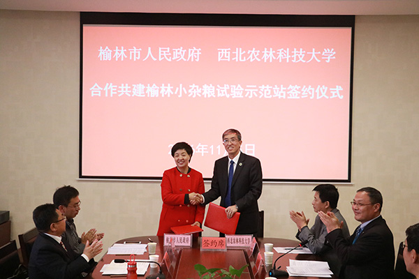 11月5日,榆林市人民政府与西北农林科技大学合作共建榆林小杂粮试验示范站签约仪式在农学院203会议室进行。榆林市人民政府副市长马秀岚、榆林市农业局局长李怀珠、榆林市农业局副局长叶锋、榆林市农业科学研究院院长常勇、榆林市种子管理站等相关部门领导和负责人,西北农林科技大学副校长钱永华教授、农学院院长单卫星教授、科技推广处处长王亚平、副处长张正新、李晓诚、付先锋,榆林小杂粮试验示范站首席专家冯佰利教授及团队成员等40人参加了会议。榆林市人民政府副市长马秀岚与西北农林科技大学副校长钱永华代表双方签署了协议书。西北农林科技大学科技推广处处长王亚平主持签约仪式。