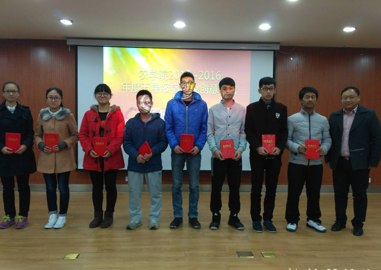 李春华老师从评选宗旨、实施对象等六个方面介绍了农学院星级宿舍评选条例,她还鼓励同学们做到学风优良、团结互助、行为文明。然后由生活部部长贾中林同学介绍了创意宿舍以及五星级文明宿舍获奖情况,像在场观众展示了优秀宿舍的照片。李春华老师、帕尔哈提老师和张海成副书记分别给创意宿舍获得者与校五星级宿舍成员颁奖。