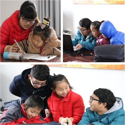 在寒冷的冬日,孩子们刚刚放寒假,没有一个学习游戏的好去处,回访小队的成员将孩子们召集到村委会会议室为孩子们进行爱心支教。