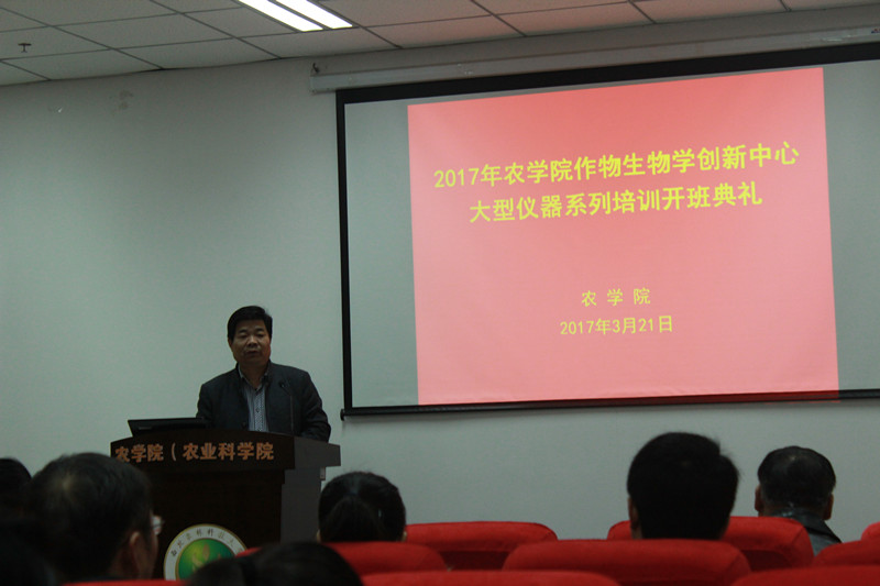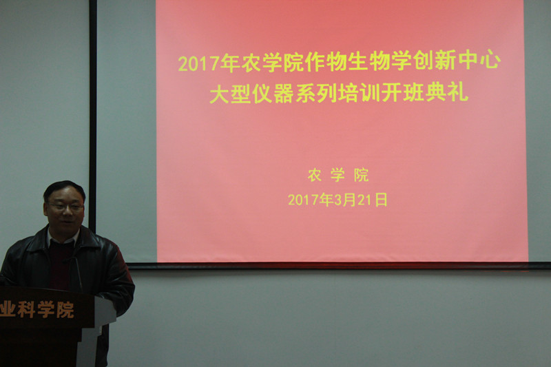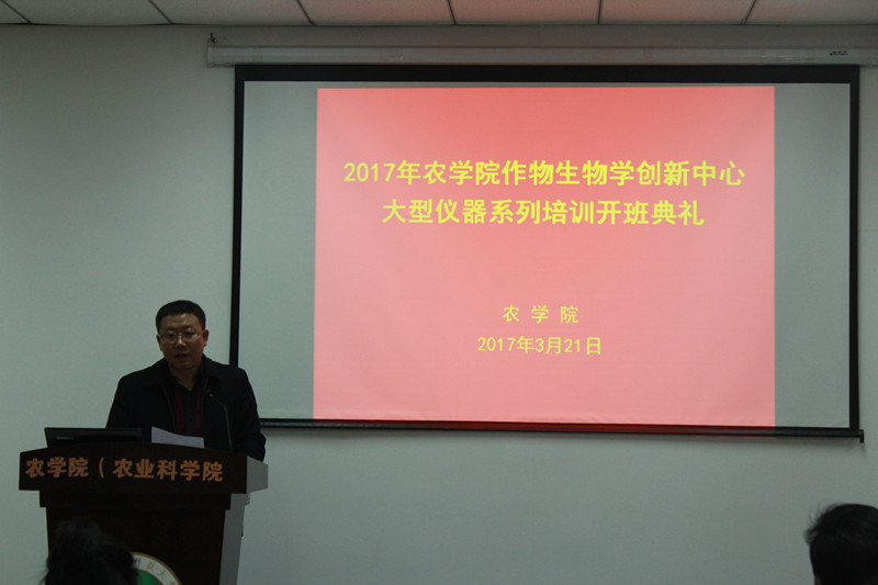 在开班仪式上,我校科研院条件建设与成果管理处胡宝仓处长就我国农业科研仪器设备管理的政策以及我校大型仪器设备共享平台的总体运行状况对学员作了详细的介绍。学院党委副书记张海成出席开班仪式并致欢迎辞。他希望通过本系列培训,师生们能够实现以教促学,以教促用的目的。