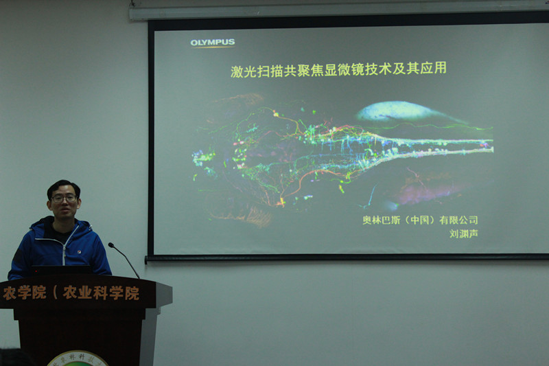开班仪式结束后,奥林巴斯高级工程师为学员们做了《激光扫描共聚焦显微镜技术及其应用》专题报告并现场答疑答。下午,作物生物学创新中心负责共聚焦显微镜的实验技术员杨炳鹏对该仪器进行了细节操作方面的培训指导,理论知识培训结束后学生们纷纷报名要求进行上机操作,以便加深巩固所学的知识。