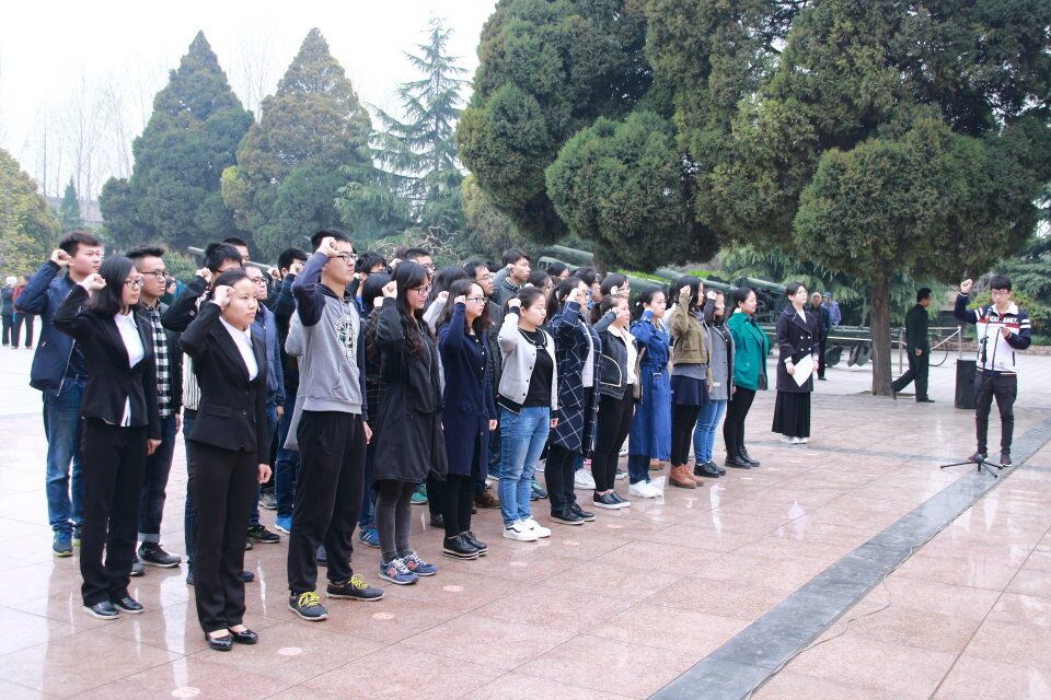 上午9点,祭扫仪式正式开始。同学们神情肃穆,心情沉重,在庄严的国歌中,向光荣献身的革命烈士敬献花圈,集体默哀,以此来表达对先烈们的崇高敬意。农学类1503班贾中林作为学生代表发言,带领大家宣誓“人民为先,祖国至上;诚实勇敢,自律自强;奋发有为,誓做栋梁;振兴中华,再造辉煌。”