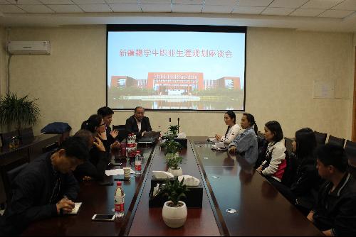 在会议开始后,受邀前来的艾尼瓦尔江教授结合自已的求学经历,以及当前严峻的就业形势,给予了新疆籍少数民族学生在学业规划方面很多指导。他指出,来内地上学的少数民族优秀学生,要有理想、有抱负、有朝气,要力争上游、全面成长,政治上要优秀,学业上要勤奋,要大力依靠自身努力,尽心无私,积极传播正能量;努力消除自身狭隘的就业观念,要敢于在内地以及更广阔的发展空间上创造自己的未来;面对严峻就业形势,要尽力提升自己的学历,提高自己的竞争力。他希望少数民族同学寓特殊性于非特殊性之中,在关注民族风俗、学习背景等特殊性的同时,更多的加强与其他同学的沟通和融合,通过自身的努力不断适应学校的学习和生活,自觉维护民族稳定与民族团结,为国家的伟大复兴做出自己的贡献。