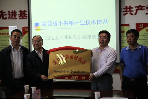 5月17日,陕西省小杂粮产业技术体系与定边县科技扶贫对接座谈会暨荞麦研究所成立揭牌仪式在定边县举行。省小杂粮体系首席科学家柴岩教授、冯佰利教授,岗位专家王鹏科副教授、高小丽副教授,定边县人民政府副县长席晓辉,定边县农业局王宏局长、韩晓为副局长,定边县种子管理站苗仲学书记,定边县农技中心苗玉琴主任以及定之荞韩永飞、赛雪粮油等数十家企业代表出席会议。会议由定边县农业局副局长韩晓为主持。