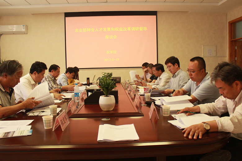 5月19日下午,农业部科技发展中心副主任朱岩、种子局品种权保护中心崔野韩处长以及陕西省种子管理站相关领导一行7人来农学院检查种业人才发展和权益改革工作进展,农业部科技发展中心处长崔野韩主持了本次会议,农学院单卫星院长,惠安堂书记,学校相关处室负责人以及农学院部分专家参加了此次会议。
