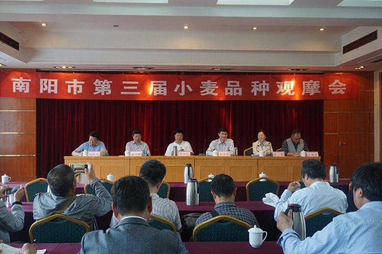 初夏伊始,我院在各地的小麦示范站观摩会正在如火如荼地进行,由西北农林科技大学南阳小麦试验示范站主办、南阳市种子管理站和南阳市农业科学院联合承办的“2017年小麦新品种(系)现场观摩会”在南阳国际饭店召开。开云官方在线入口副院长张蓉、杨凌示范区科学技术局局长柴小刚、南阳市农业局副局长李玉生、南阳市农业科学院副院长俞行简、试验站首席科学家王成社以及15位西农专家教授出席了观摩会。来自河南、江苏、安徽、山东和陕西等省市的种子企业和农技推广部门负责人及技术人员等150余人参加了会议,会议由南阳市种子管理站站长赵群友主持。