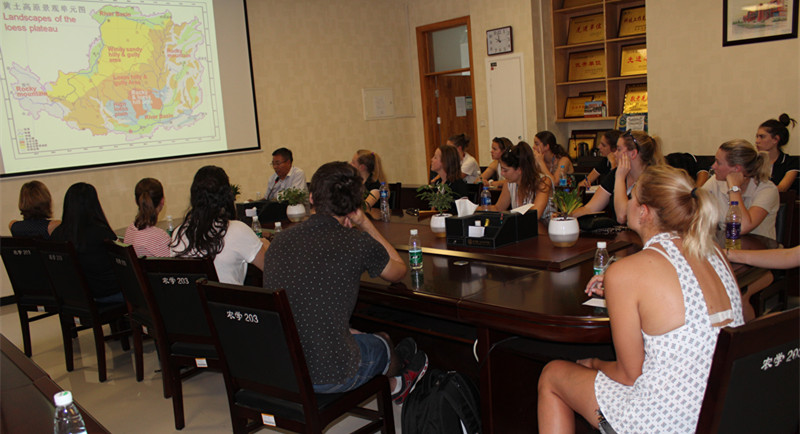 李军教授从中国旱地农业基本概况、黄土高原旱地农业技术研究与实践进展及未来旱作农业技术研究重点领域等三个方面向访学团成员作了详尽、深入浅出的介绍,精彩的报告引起了访学团师生浓厚的兴趣,不时引起阵阵热烈的掌声。会上,双方还进行了热烈的互动交流。