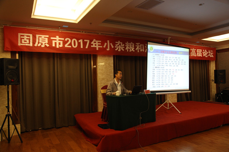 西北农林科技大学冯佰利教授、甘肃省农科院作物所所长杨天育研究员、宁夏农林科学院固原分院程炳文研究员、宁夏农林科学院固原分院曹秀霞研究员和宁夏农林科学院固原分院常克勤研究员等五位专家分别从《杂粮生产与加工利用现状分析》、《谷子、糜子的栽培与病虫害防治》、《宁夏小杂粮产业现状与发展前景》、《宁夏胡麻产业现状与发展对策研究》、《宁夏荞麦的产业地位与生产能力提升》等方面做了精彩的专题报告,并对固原市小杂粮和油料特色产业存在的问题、发展机遇、发展优势和提质增效的路径展开研讨,提出了针对性的意见和建议。专家们围绕小杂粮和油料特色产业主题,结合固原市实际,从不同方面不同角度同参会人员进行了分析与交流。