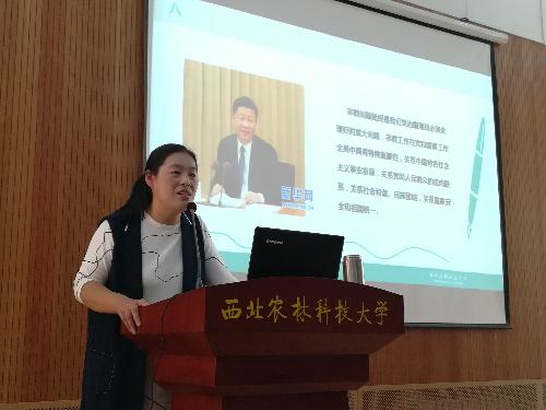 为在全体学生中深入开展宗教相关政策法规专题学习教育活动,充分发挥学生党员思想引领和模范带动作用,农学院于9月28日在农科大楼一楼台阶报告厅举行了“坚定理想信念 树立正确的民族观、宗教观”专题党课,马克思主义学院副教授赵海霞应邀主讲,农学院全体辅导员和学生党员参加了学习。