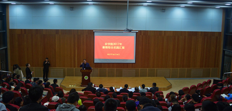 10月14日晚7时,农学院15级全体同学齐聚报告厅,共同参加农学院2017年暑期实习综合实践汇报交流会。农学院副院长冯永忠以及各班带队老师出席了此次会议。