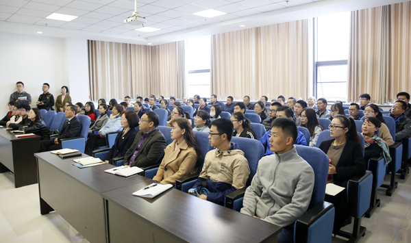 院党委副书记张海成讲到:“举世瞩目的中国共产党第十九次全国代表大会今天胜利开幕了,这是在我国全面建成小康社会决胜阶段、中国特色社会主义发展关键时期召开的一次盛会,承载着继往开来的庄严使命,开启了实现伟大复兴中国梦的新征程。作为基层共产党员和党务工作者,我感到无比兴奋和自豪。我们将认真学习贯彻党的十九大精神,不忘初心,牢记使命,牢固树立‘四个意识’,贯彻落实党对高校的全面领导,加强和改进基层党建工作和思想政治工作,以立德树人为根本任务,加快‘双一流’建设步伐。
